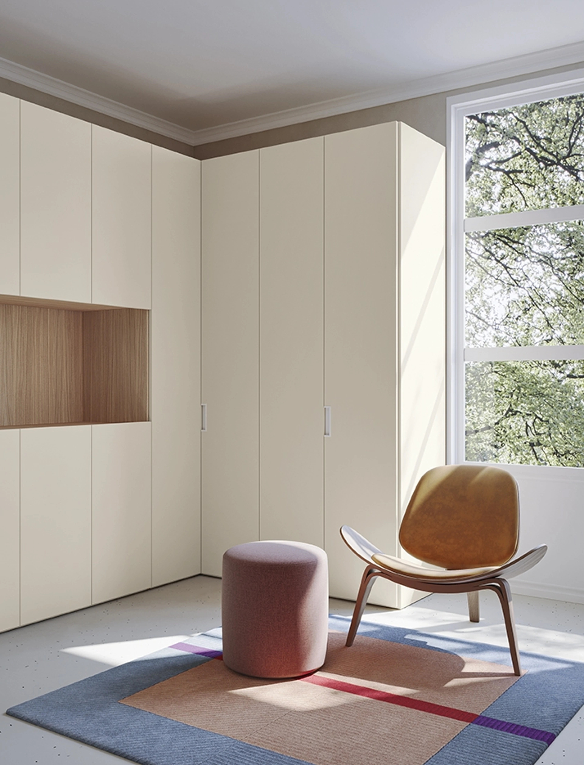 Gli Armadi ad angolo con ante battenti sono componenti essenziali nella camera da letto, per renderla arredata al meglio, funzionale e completa di tutto. Contattaci e scopri di più sulla nostra collezione di Arredamento Casa: sarai in grado di completare la camera da letto utilizzando una diversificata gamma di mobili contenitori moderni, come l'armadio in melaminico nella fotografia. Armadio Concreta N23 di Colombini Casa: compila il form per ricevere informazioni di ogni sorta e consigli per progettare la camera che hai sempre desiderato.