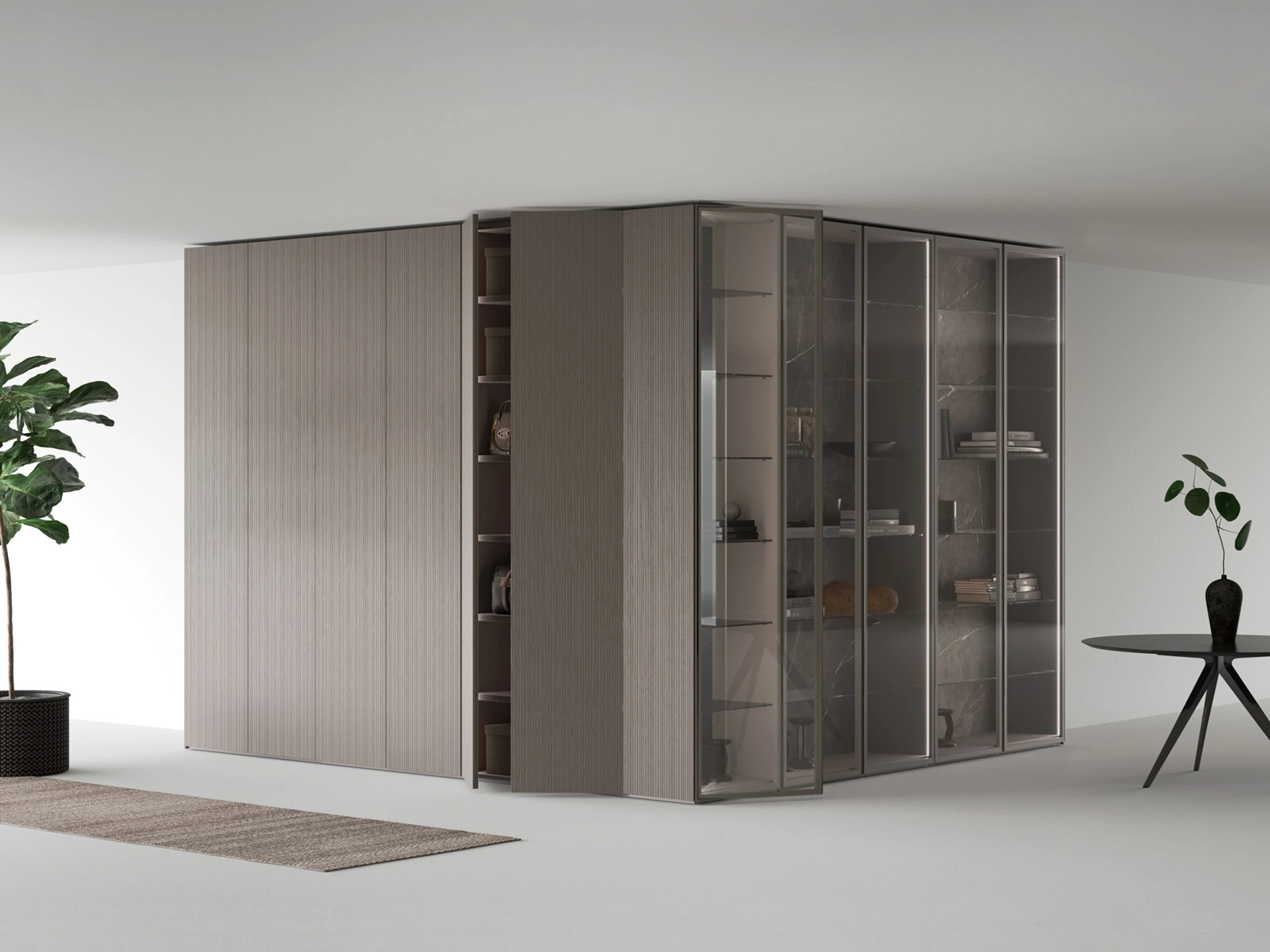 Se desideri ricreare una stanza pratica e sofisticata, compila il form o visitaci per ottenere infromazioni, consigli e novità nell'ambito dell'Arredamento Casa. Farci visita vuol dire visionare in prima persona tante proposte del noto e rinomato brand, sempre di alto contenuto estetico. Qualità e comfort sono gli aspetti che, unitamente a un certo stile, connotano tutti gli Armadi ad angolo moderni del marchio Caccaro. Armadio Freedhome con angolo esterno di Caccaro: se vuoi arredatori professionisti per preventivi e progetti, realizza con noi la casa che hai sempre voluto. Una ampia varietà di arredi in legno laccato come quest'armadiatura con ante battenti nell'immagine.