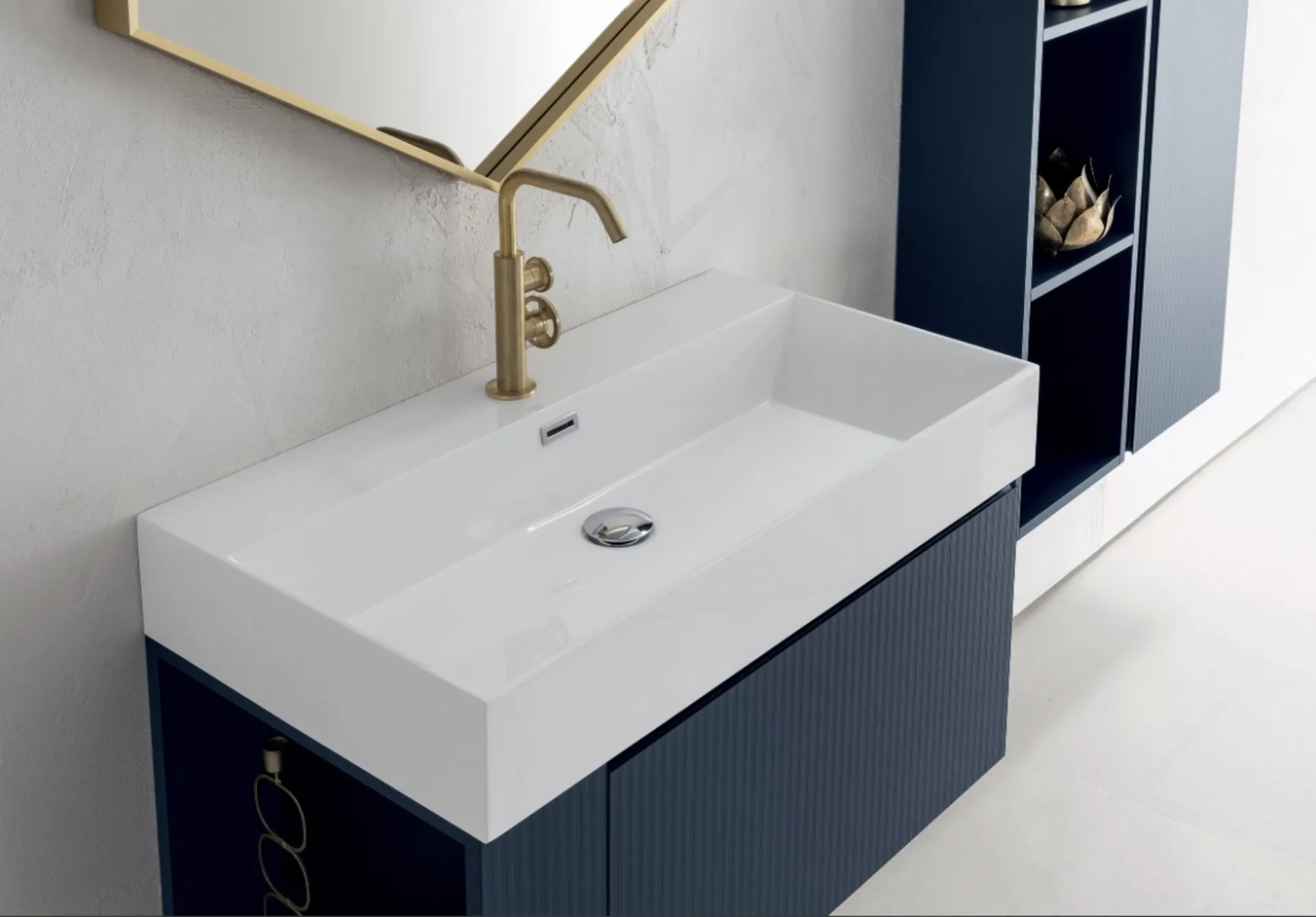 Ogni progetto ottenuto con i prodotti dell'azienda è caratterizzabile con mobili bagno sospesi di ogni genere, sempre in materiali durevoli e che resistano. I bagni di casa cambiano sia per gusto che per metratura, quindi è imprescindibile che ciascuno trovi la soluzione ideale per le proprie necessità. La sala da bagno è lo spazio finalizzato al benessere e alle pratiche di cura personale, quindi va arredato mixando doti di praticità e design. Con una grande varietà di composizioni dell'azienda Compab potrai progettare la stanza da bagno nei minimi particolari, risolvendo le tue esigenze abitative. Le cromie, le finiture e gli elementi che il marchio propone per l’Arredo Bagno moderno con mobili bagno sospesi offrono l'opportunità di progettare vari contesti. Qui ti proponiamo il modello di Mobile da Bagno sospeso B-GO BG019 di Compab in melaminico che impreziosisce perfettamente lo spazio salvaguardando la praticità.