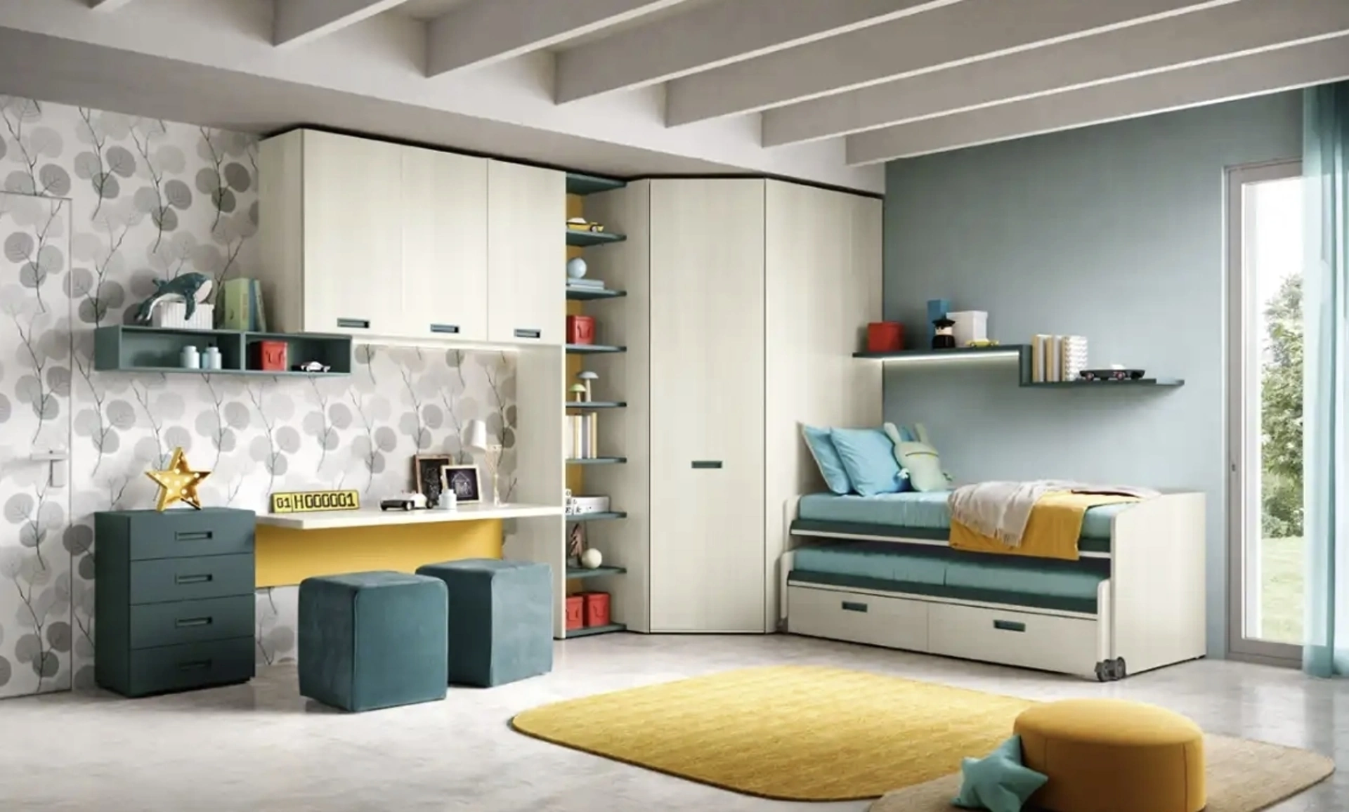 Con una composizione arredativa Moretti Compact Camerette, potrai completare con funzionalità e design lo spazio nel quale i tuoi bambini passano gli anni più importanti della vita. La Cameretta K105 Moretti Compact Camerette in melaminico è un mondo articolato da progettare con cura, unendo differenti elementi accessori su misura. Tonalità di tendenza e soluzioni progettuali ad hoc connotano le più originali composizioni del noto e conosciuto marchio che presentiamo nel nostro showroom. Moretti Compact Camerette soddisfa lo stile dei bambini e i desideri degli adulti con le sue Camerette moderne con letti scorrevoli, ideali per esigenze di ogni tipo.