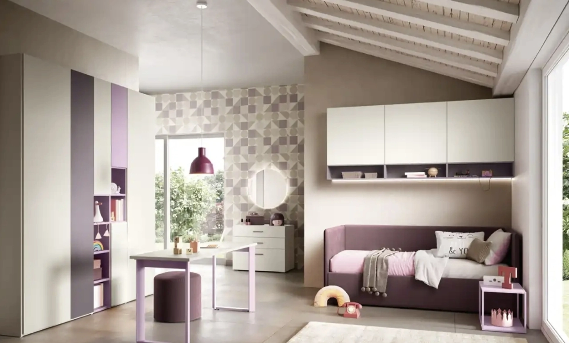 Questa proposta in melaminico ultima ottimamente le qualità pratiche e il valore estetico della camaretta, in quanto è capace di abbinare ergonomia e sicurezza. Moretti Compact Camerette offre un ricco catalogo di accessori da abbinare su misura: troverai letto, guardaroba, tavolo da lavoro, sedie e librerie. Nell'arredo della stanza dei giovani affidati a noi: nel nostro punto vendita proponiamo tutte le più originali composizioni moderne per la loro camera. Porta design e colori vivaci nella stanza dedicata ai bambini con questa soluzione, una delle Camerette componibili per bambine di Moretti Compact Camerette.