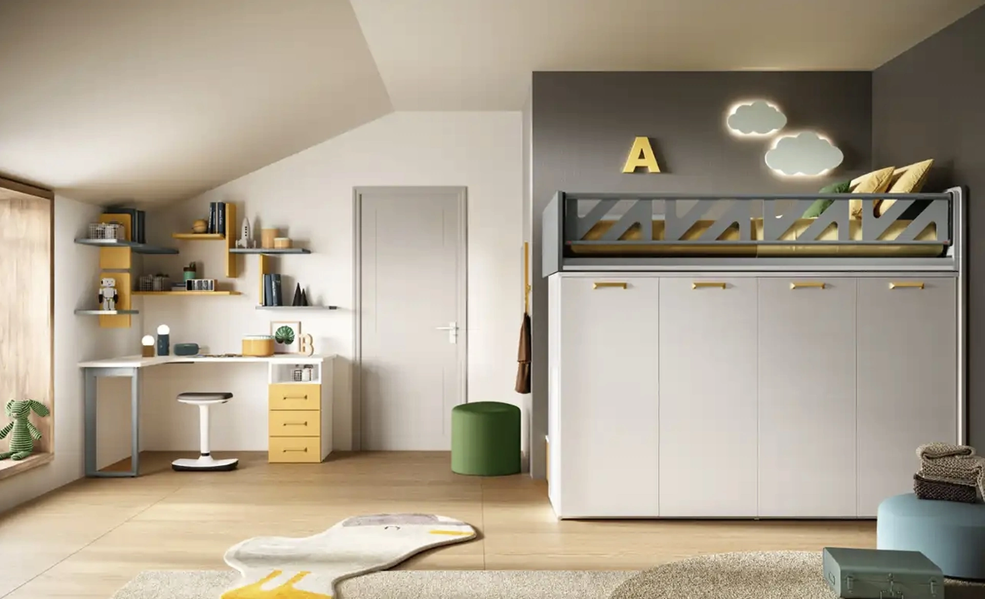 Scopri nel nostro showroom la Cameretta K109 di Moretti Compact Camerette in melaminico: è la soluzione per creare perfettamente un ambiente accogliente, bello e ben organizzato. Materiali durevoli e vernici atossiche caratterizzano le proposte del marchio, tra cui troverai anche quelle moderne a soppalco ideali per te. Gli accessori disponibili per le Camerette a soppalco di Moretti Compact Camerette sono sempre personalizzabili, per scongiurare qualsiasi problematicità di spazio e funzionalità. Se la stanza ha dimensioni ridotte, sono differenti le soluzioni che Moretti Compact Camerette presenta, sempre in grado di coniugare ergonomia e sicurezza.