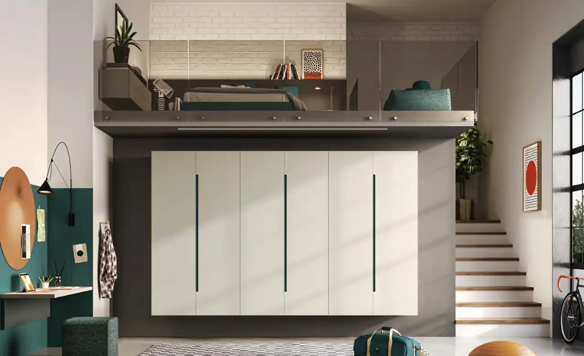 Moretti Compact Camerette soddisfa lo stile dei giovani e le necessità degli adulti con le sue Camerette design a soppalco, ideali per necessità di ogni tipo. Tonalità di tendenza e progetti articolati ad hoc caratterizzano le più esclusive composizioni del rinomato marchio che proponiamo nel nostro punto vendita. Vieni nel nostro punto vendita e potrai visionare in prima persona tutte le più esclusive composizioni d'arredo a soppalco design di Moretti Compact Camerette per i più piccoli. La Cameretta Y115 di Moretti Compact Camerette in melaminico è un universo articolato da decorare con attenzione, unendo differenti elementi accessori su misura.