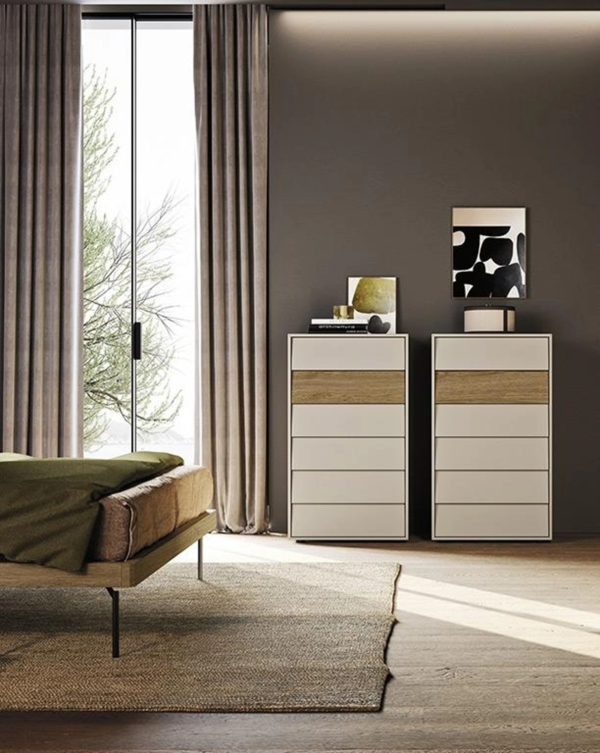 I Comodini, comò e gruppi notte possono essere abbinati al letto e al guardaroba o possono essere in voluto contrasto con essi: la scelta si baserà sulle reali possibilità di spazio e sulla ricerca di un ben dosato effeto finale. Ottimizza i tuoi spazi garantendoti grande funzionalità, spazio utile e uno stile unico!. Il Cassettiera Vela di Mobilgam è una tra le più originali soluzioni capaci di apportare un accento di stile in aggiunta alla camera, con l'uso di materie eccellenti.