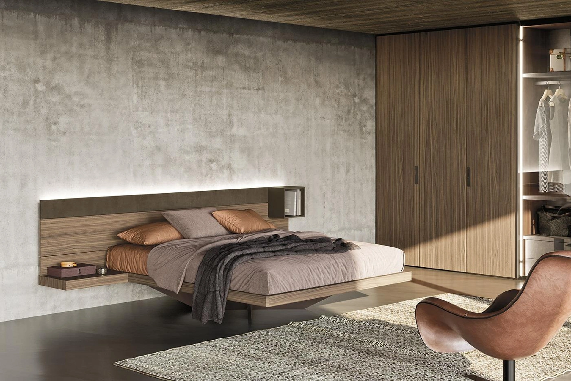 Se vuoi ricreare un'atmosfera intima e rilassante, il modello mostrato in foto fa per te: nella stanza del relax dovrai ricreare un'atmosfera rilassante, per farti ritemprare le energie tutte le notti. Con il Letto matrimoniale Wall System N06 di Mobilgam del noto e rinomato brand, leader del settore, potrai impreziosire la tua zona notte garantendoti comfort, funzionalità e uno stile raffinato. Scopri in negozio una ricca gamma di Letti con testiera, mobili e complementi per la camera da letto dei migliori produttori. Se vuoi allestire spazi design, ti aspettiamo per illustrarti la nostra profilo di Arredamento Casa per realizzare il tuo progetto su misura.