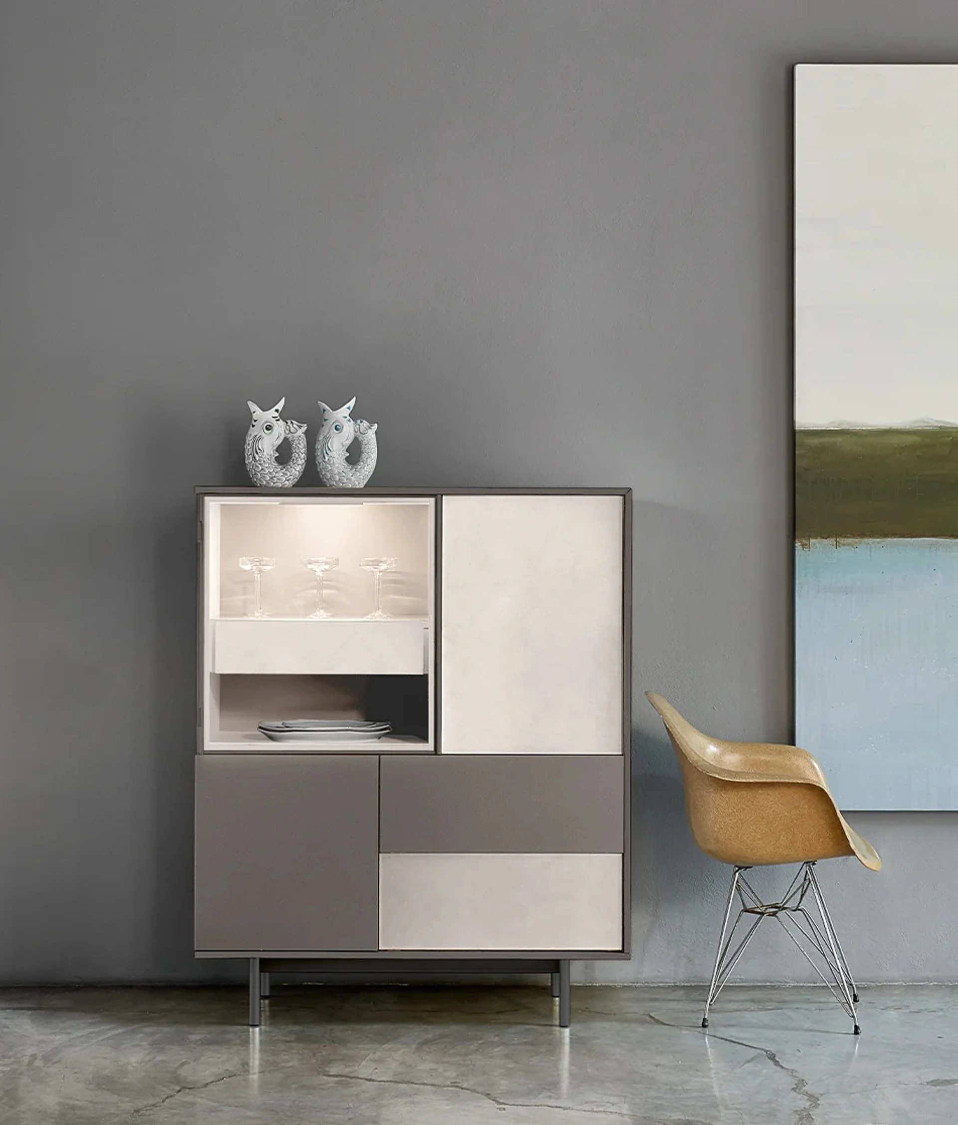 Se sei un appassionato di arredo e sei sempre aggiornato riguardo i nuovi trend nel settore, il nostro centro espositivo è il luogo ideale per te. Le Madie moderne, tra cui il modello mostrato in foto, valorizzano il living o la sala da pranzo grazie a linee ben studiate e grandi doti contenitive. La Madia Scrigno 02 di Sangiacomo in foto in laccato opaco risolve le più personali esigenze di spazio e stile, arredando il living con praticità e uno stile unico. Anche in un living di dimensioni contenute, questi mobili soggiorno riescono a risolvere diverse esigenze abitative assicurando diverse possibilità di caratterizzazione su misura.