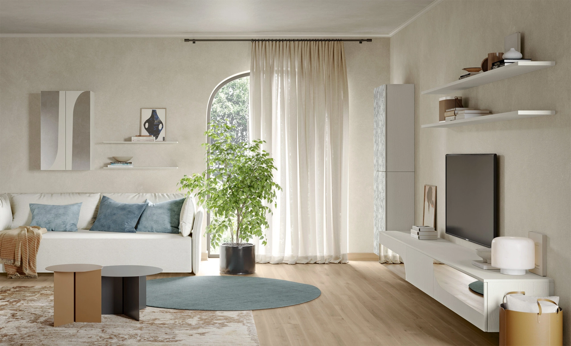 Anche in un living non troppo grande, questo tipo di arredo riesce a ottimizzare gli spazi usufruendo al meglio di ogni angolo e assicurando componibilità su misura tipica delle soluzioni moderne. La Parete Attrezzata Eclettica EG004 di Colombini Casa nella fotografia, realizzata in vetro, risolve le più personali esigenze abitative di spazio e stile senza rinunciare alla ricerca estetica. Se cerchi arredi salvaspazio e realizzabili su misura, contattaci e ottieni informazioni sull'Arredamento Casa delle migliori marche. Un po’ librerie, un po’ contenitori ed espositori: le Pareti Attrezzate sono ideali per arredare un luogo dinamico e operativo.