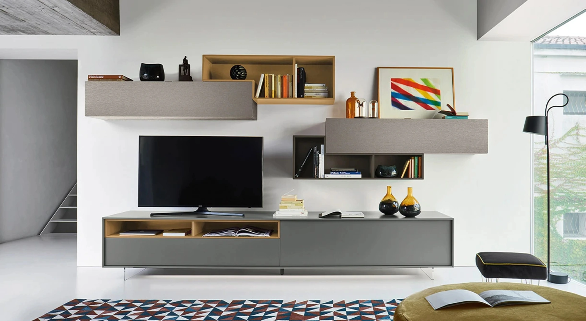 Le Pareti Attrezzate moderne offrono l'opportunità di ricreare differenti atmosfere nel living, liberando spazio e usufruendo al meglio di ogni angolo. Scopri la nostra serie di arredi per il living del marchio Sangiacomo e potrai arredare la tua casa con un design unico e le doti contenitive di cui hai bisogno. La Parete Attrezzata Lampo 042 di Sangiacomo diventa protagonista in stanze di ogni genere grazie ai suoi accessori modulari e alla possibilità di abbinare texture, materiali, tonalità, forme e tanto altro.