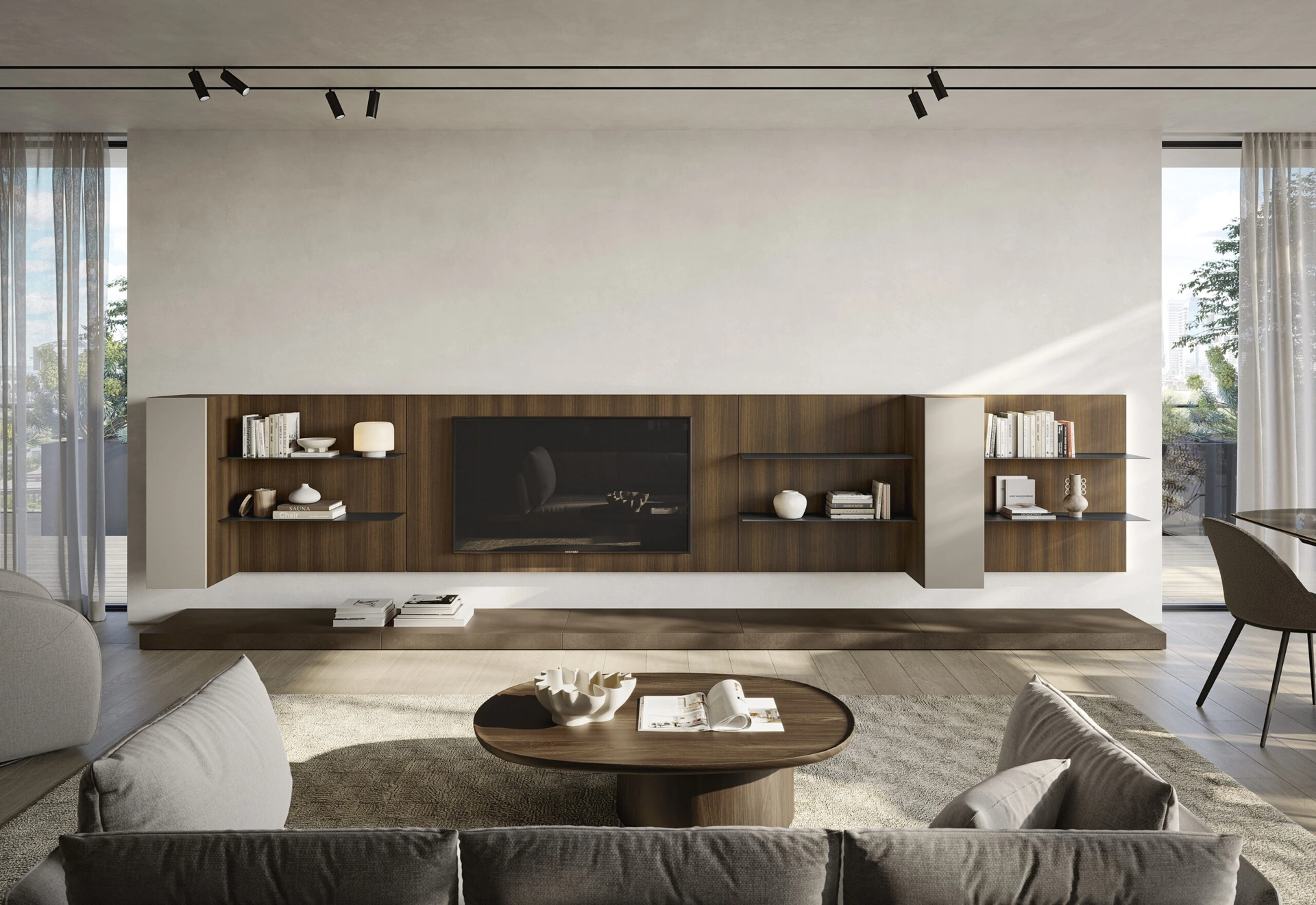 Anche in un living di dimensioni contenute, questo tipo di arredo riesce a organizzare al meglio gli spazi sfruttando bene ogni angolo e assicurando l'alta componibilità tipica delle soluzioni moderne. Se cerchi arredi salvaspazio e realizzabili su misura per te, contattaci e ottieni informazioni sull'Arredamento Casa dei migliori brand. La Parete Attrezzata Night & Day L02NS di Colombini Casa in foto, realizzata in melaminico, risolve le più personali esigenze abitative di stile e spazio senza rinunciare alla ricerca stilistica. Questa soluzione rappresenta tutta l'eccellenza che il marchio garantisce grazie a pluriennale competenza e grande passione nel settore dell'arredo e del design.