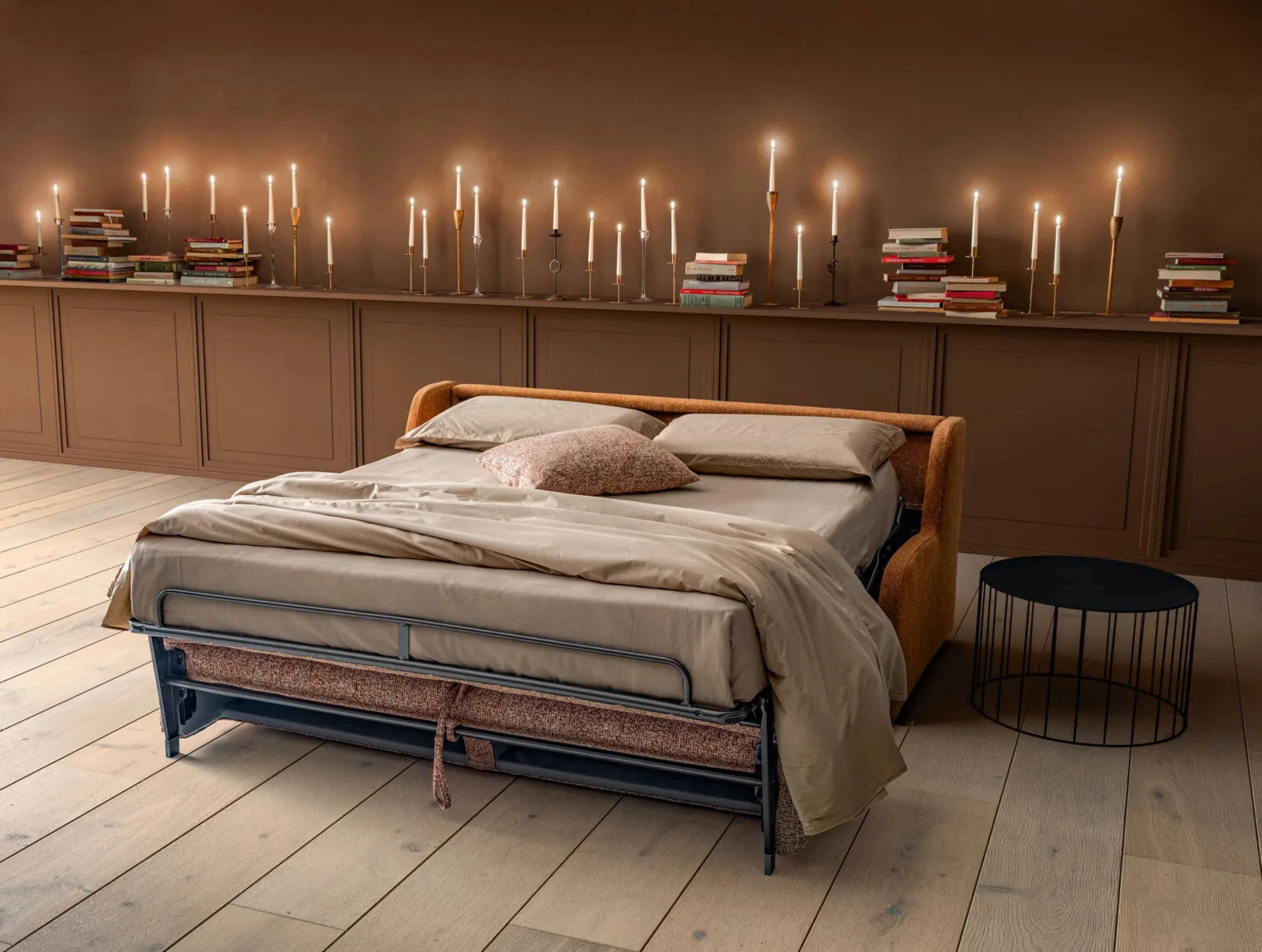 I nostri Salotti sono pensati per essere abbinati a elementi accessori di ogni genere, come tavolini, lampade e piantane o in combinazione con ulteriori divani in tessuto. Divano Letto Climb di Samoa: ricrea uno spazio intimo e confortevole in spazi moderni di gran classe. Il catalogo Samoa propone tanti spunti per arredare gli interni in nome di praticità e valore estetico, mettendo al centro il tuo comfort. Se desideri imbottiti con letto come il modello nella fotografia, contraddistinto dai volumi che invitano a goderti i tuoi momenti di riposo.