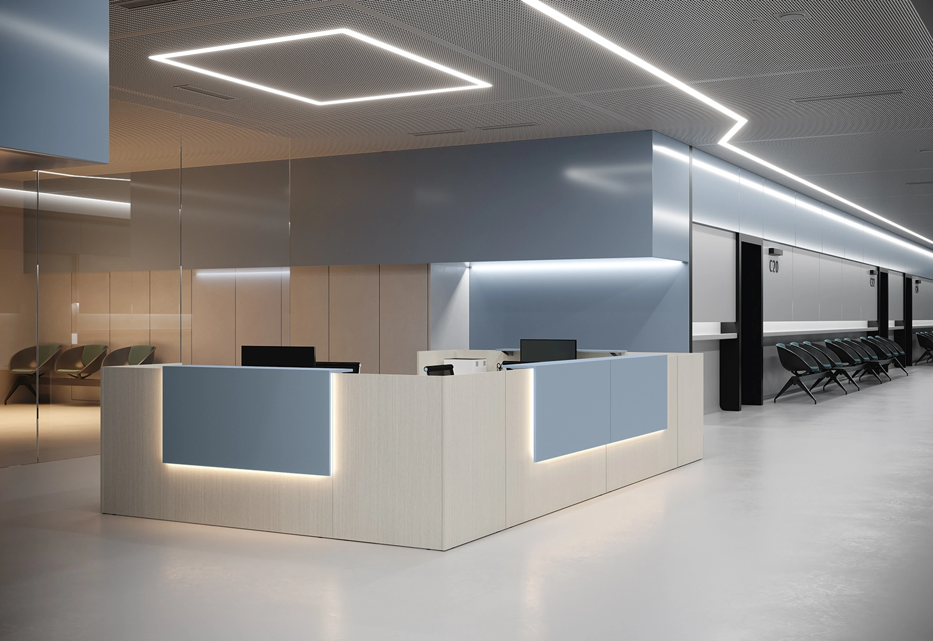 Visitare il nostro negozio vuol dire valutare prodotti definiti da materie prime di qualità e linee accattivanti, frutto della pluriennale esperienza della firma. Questa soluzione è disponibile in negozio: ti guideremo nell'arredo di un ufficio che si rispetti, grazie ai prodotti dei principali marchi presenti sul mercato. I modelli di banconi reception di Colombini Office in melaminico hanno materiali adatti a completare gliuffici unendo logica e coerenza. Reception Color 02 di Colombini Office: fa parte della linea di Arredo Ufficio che il brand mette a punto, in grado di unire doti di praticità e design.