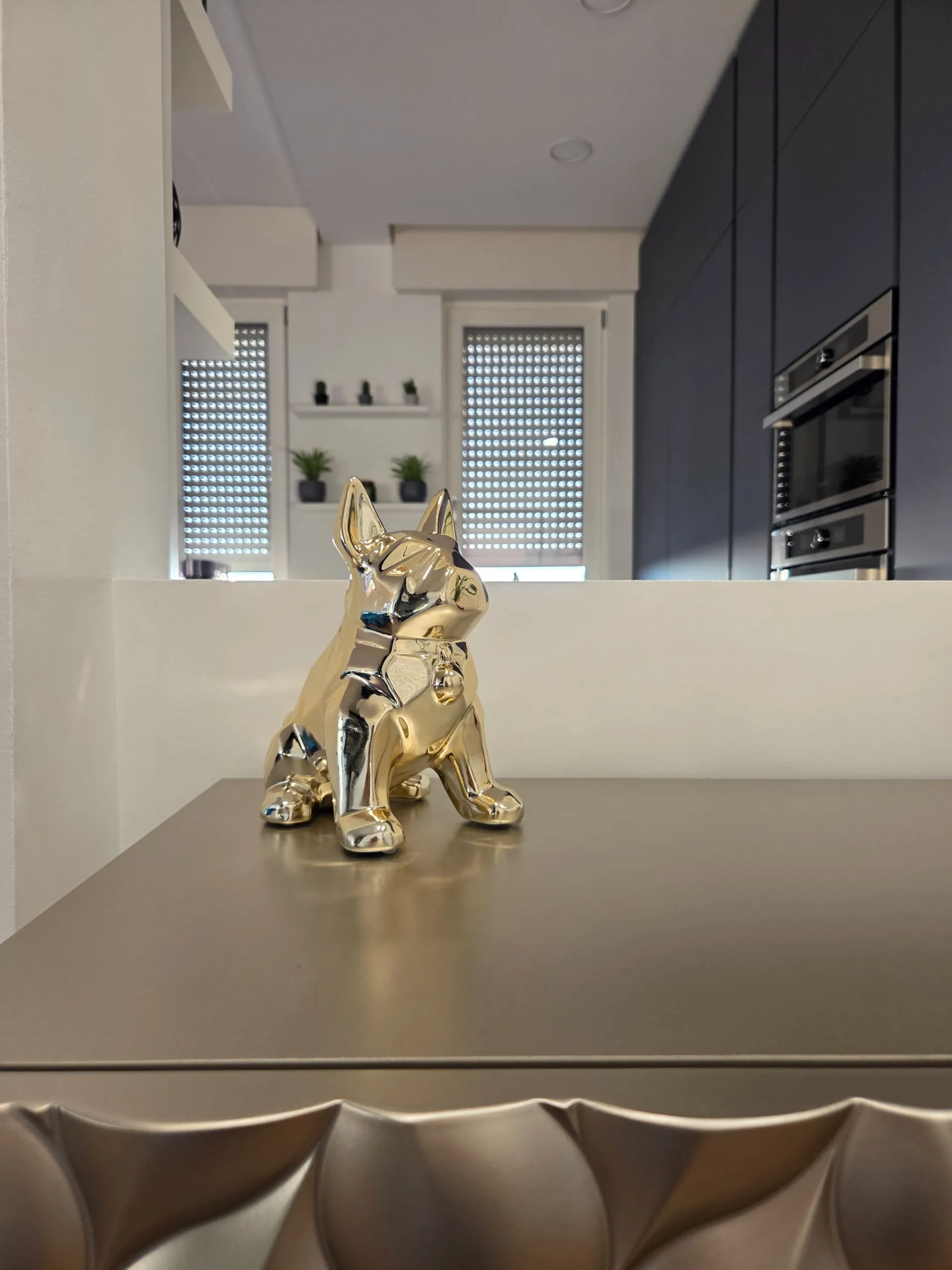 Il risultato è uno spazio raccolto ma aperto, raffinato e accogliente, dove la palette coloristica — tinte neutre, grigi sofisticati e tocchi di colore calibrati — dialoga con la luce naturale e valorizza ogni dettaglio d’arredo.